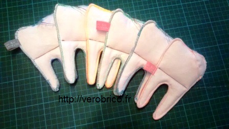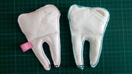 Sans attendre le lavage qui efface les repères de couture, les deux premières dents ont été offertes il y a deux jours à un petit Paul et à sa petite sœur Valentine qui se trouve être encore trop jeune pour avoir des dents 🙂