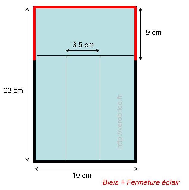 Voici le schéma de construction de l’intérieur de la pochette. Sur ce schéma vous lirez les cotes extérieures de la pochette.