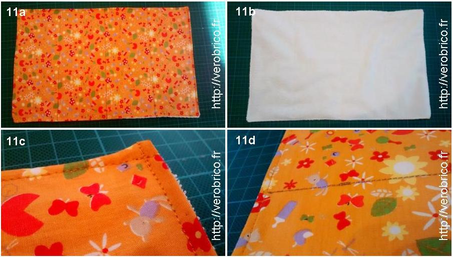 kit_bebe_verobrico (10)Après avoir mis sur l’endroit le tapis à langer, les finitions montrées par les photos 11c et 11d sont réalisées. Pour faciliter le pliage du tapis, trois coutures sont réalisées dans la longueur du tapis (photo 11d).