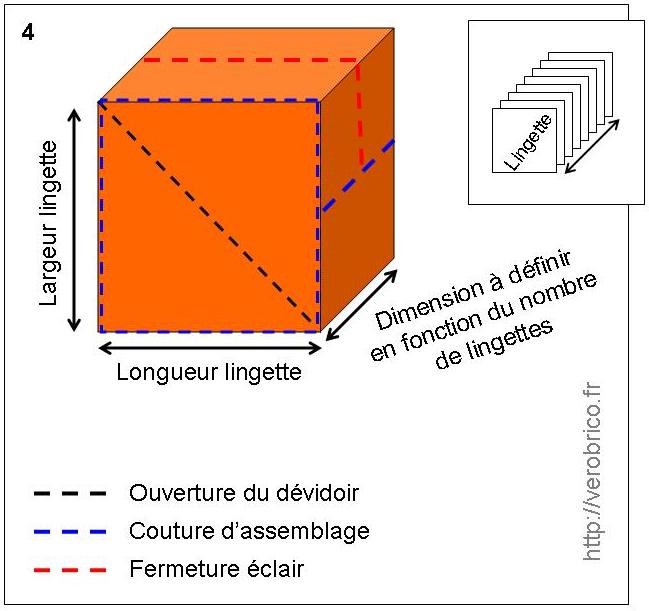 Petite Astuce : si vous ne souhaitez pas vous prendre la tête, prenez une boite qui traine à la maison et ne sert à rien et adaptez les dimensions de vos lingettes à cette boite !