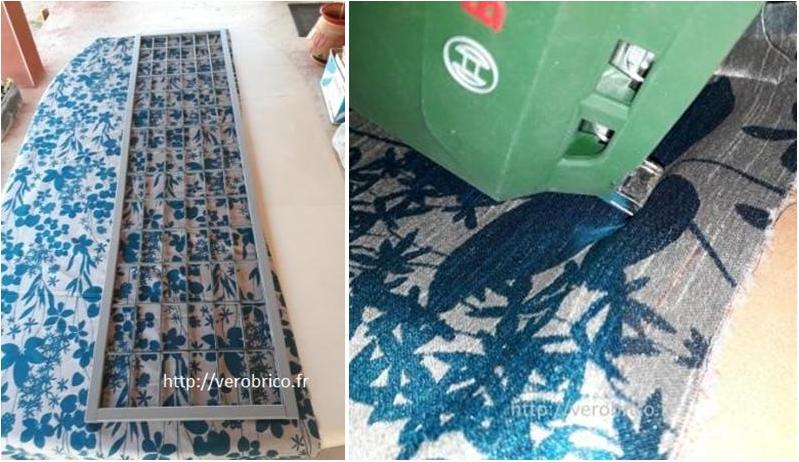 Pour passer une tringle à rideau une coulisse est cousue à 10 cm du haut de la moustiquaire. Les 10 cm de large permettent de garder du tissu au dessus de la tringle à rideau. On condamne ainsi tout accès aux moustiques.