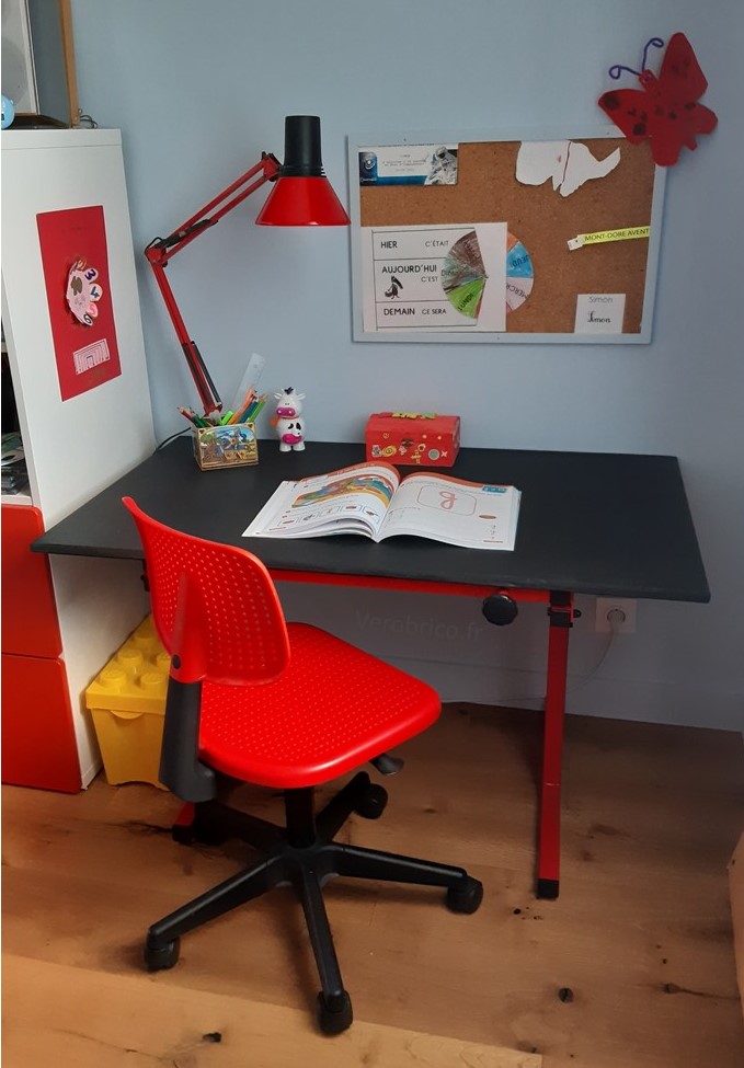 Ce bureau trouvé à Emmaüs est super joli et mon garçon l’adore. Il y fait ses découpages et y lit ses BD même à 22h une veille d’école…