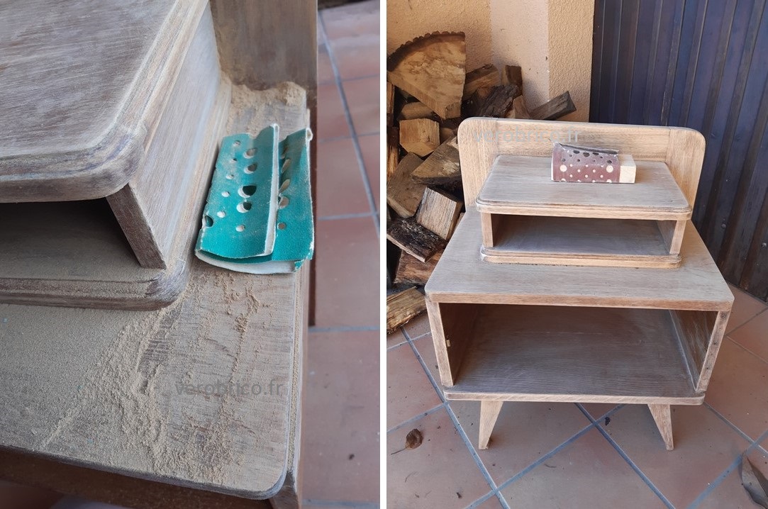 Pour retrouver le bleu gris du matériau, la rouille fraichement formée est retirée à la dremel. Ne pas prendre une brosse trop dure au risque de rayer l’objet. La laine d’acier 000 suffit à nettoyer la poignée, intérieur comme extérieur.