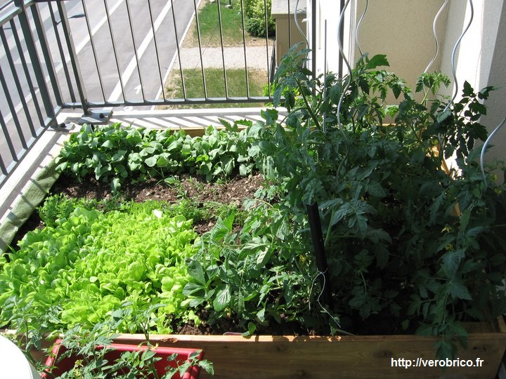 Vivant en appartement, nous voulions tout de même notre petit jardin. Un jardin ouvrier ? Non parce que ce type de jardin loué par les communes sont souvent loin de chez soi et il faut donc du courage pour aller l’entretenir après le travail (surtout en hiver !). Nous avons donc opté pour le jardin sur le balcon. En effet, notre balcon est assez grand et comme il donne sur la rue nous n’avons pas installé de table pour manger dehors.